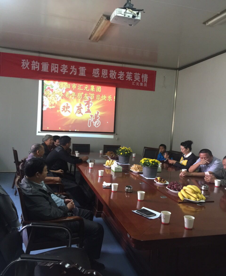 秋韵重阳孝为重 感恩敬老茱萸情 ——暨濮阳市汇元集团重阳节敬老活动 “岁岁重阳,今又重阳,不似春光,胜似春光”。“重阳”是登高望远的日子,也是其乐融融的日子。在传统佳节“重阳节”来临之际,汇元集团董事长、各个分公司总经理以及汇元集团退休的老职工欢聚一堂,共度佳节。 汇元药业行政部朱少娜经理主持了本次活动,集团办公室祁主任对本次重阳节活动致辞,退休职工代表王院长发表了精彩发言,最后汇元集团董事长作重要讲话,并向在座的各位老同志,老朋友,臣,向在汇元集团退休的老职工们致以亲切的问候、节日的祝贺和衷心的祝福。董事长表态以后每年重阳节都会以不同形式举办,来感恩、感谢曾经为集团公司做出贡献的老前辈们。