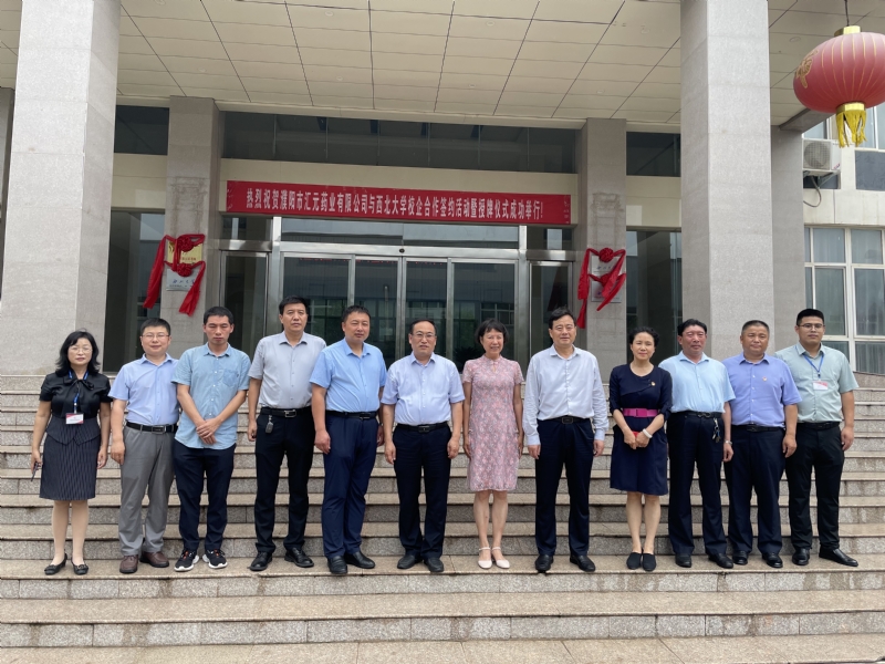 随后,邢凤华总经理和刘恩周副院长代表双方签订了西北大学化工学院本科生校外实践基地协议书及西北大学化工学院专业学位研究生校外实践基地协议书。随后薛伟明教授与邢凤华总经理为制药工程专业本科生校外实践基地揭牌;刘恩周副院长与朱言国董事长为生物与医药专业学位硕士生校外实践基地揭牌;王向旭书记与李继忠主任为西北大学化工学院产学研基地揭牌。揭牌仪式后,在公司邢凤华总经理的引导下各位领导及老师参观了企业质量控制中心及实验室,并于会议室开展了座谈,讨论了后续合作细节。